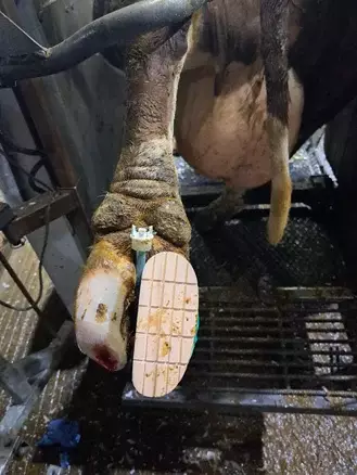 In mijn werkzaamheden als klauwverzorger kom ik regelmatig chronisch kreupele koeien tegen als gevolg van het onjuist plaatsen van een klauwblok. Het vaak te kleine blok wordt te ver naar voren geplaatst waardoor het problemen kan veroorzaken, zoals een zoolzweer onder het blok of een geïrriteerd balgebied. In het ergste geval gaat de koe ver achterover lopen met als gevolg het oprekken of zelfs scheuren van de buigpees.